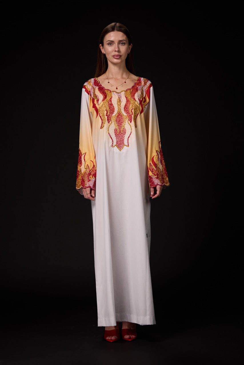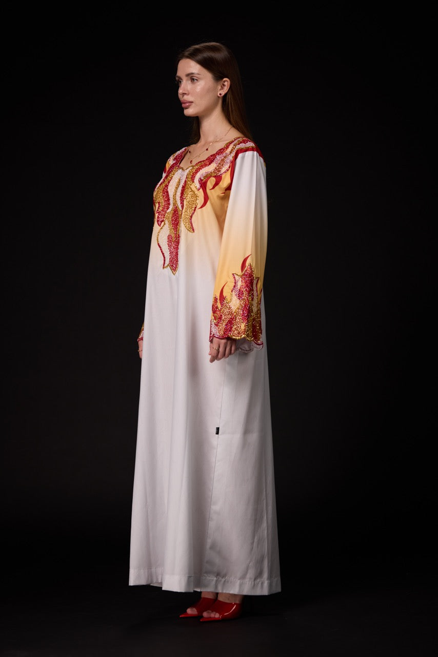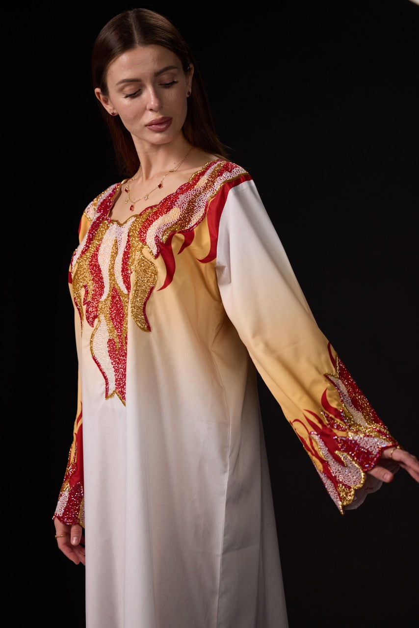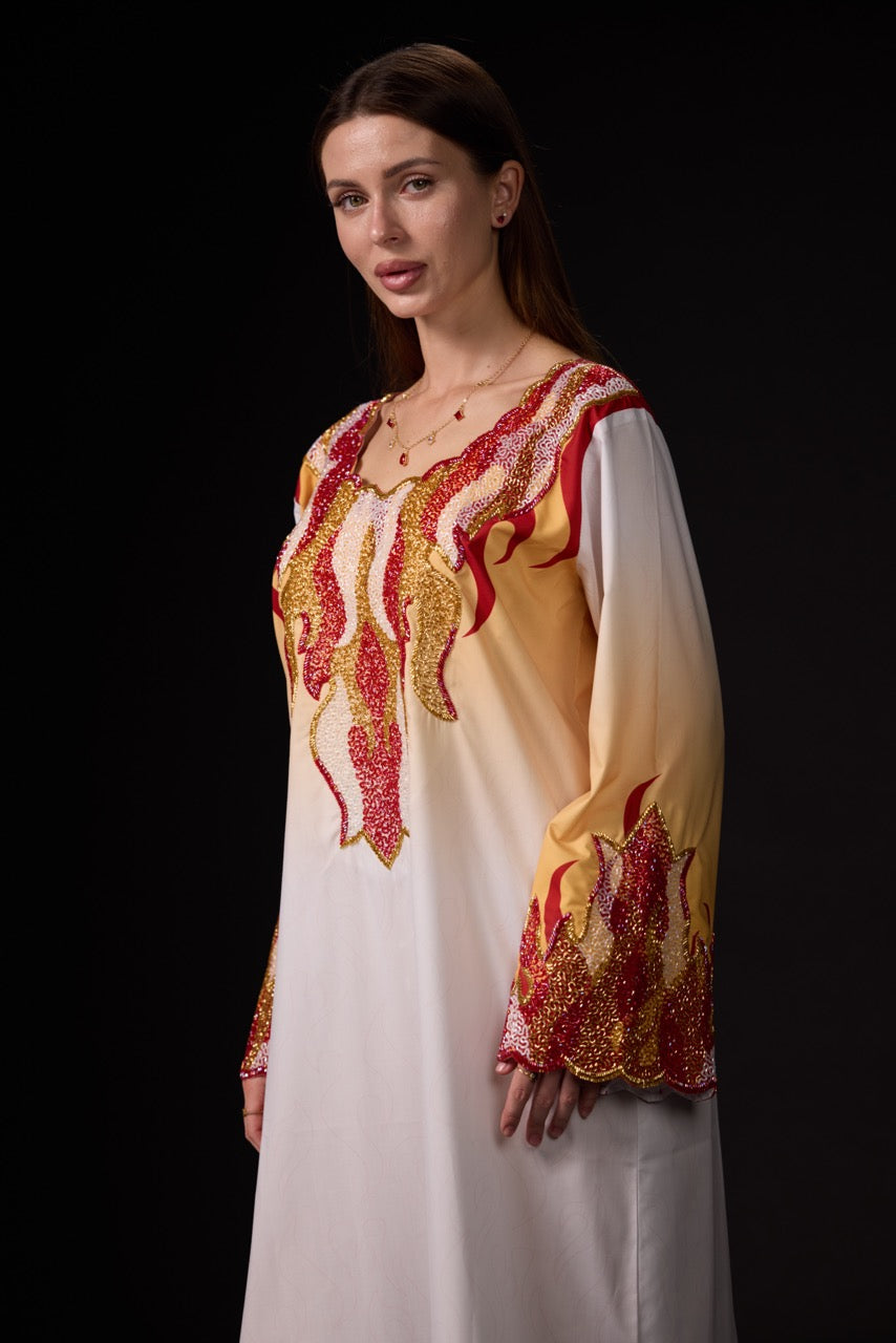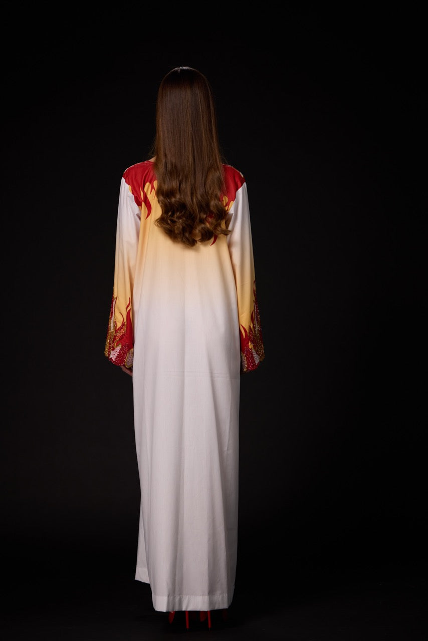 Emarati Mukhawara Thob inspired by Rengoku – A Fiery Tribute to Strength and Courage.