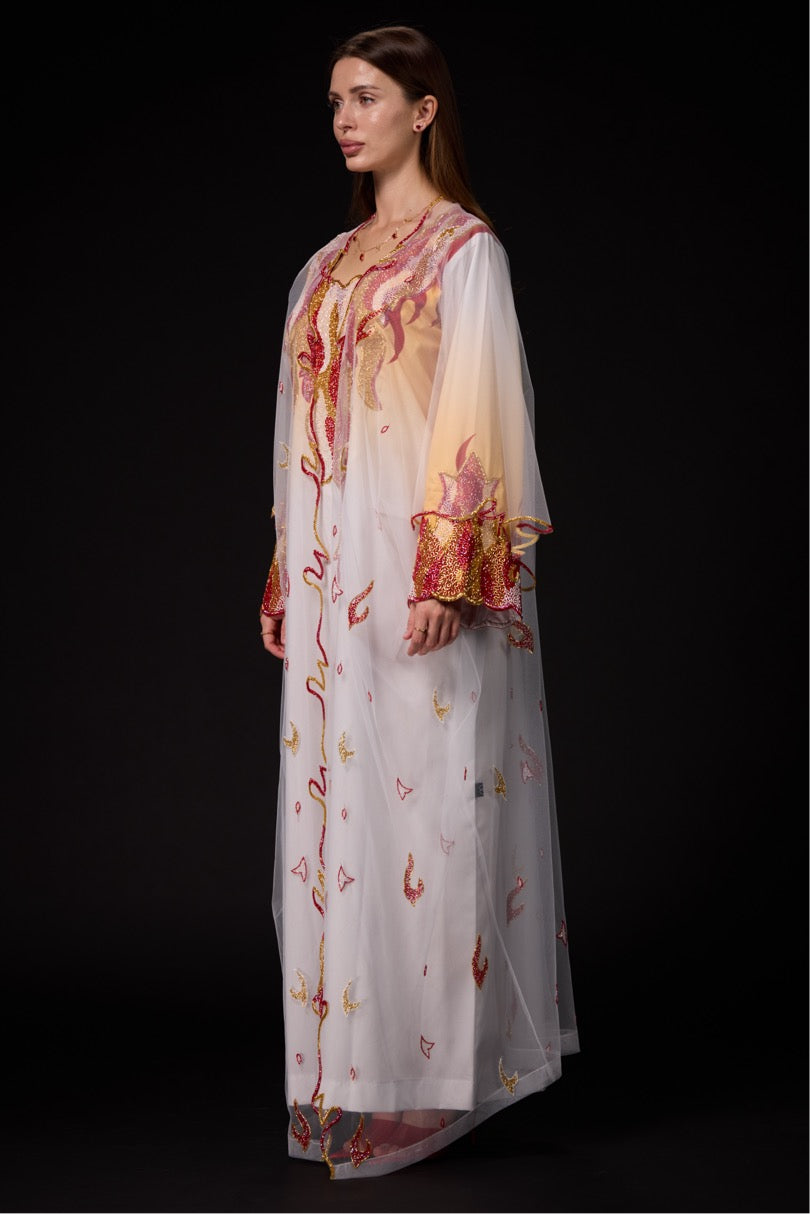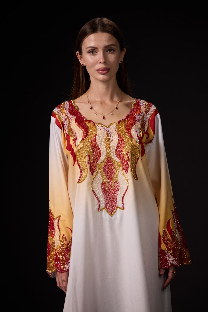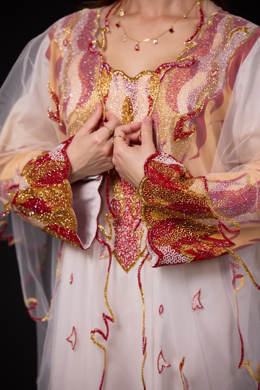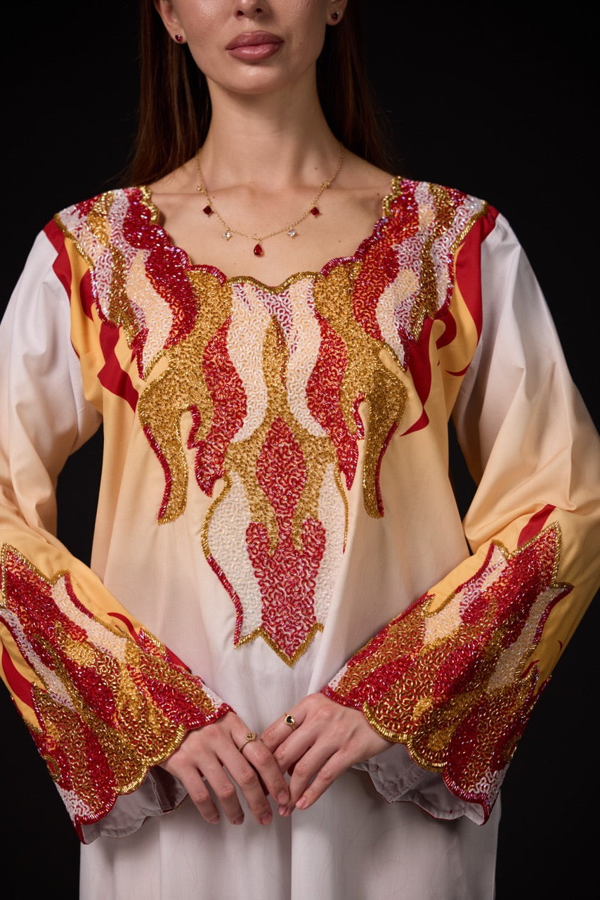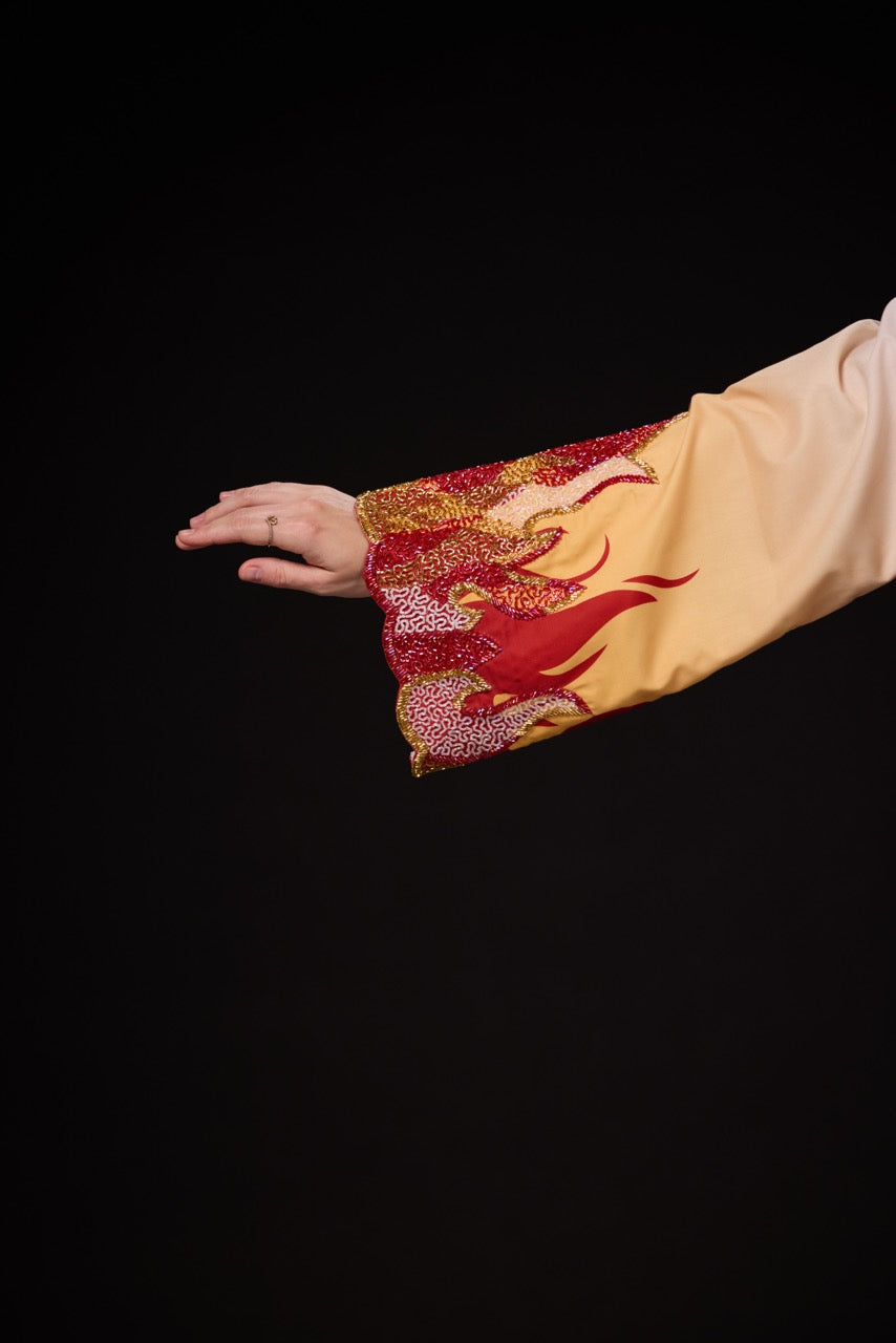 Embrace the fiery spirit of Kyojuro Rengoku, the Flame Hashira, with this exquisite Mukhawara Thob inspired by his powerful flames. Crafted in vibrant red and gold, this piece mirrors the intensity and passion of Rengoku’s unyielding courage. The flame-like patterns represent both his fiery nature and his unwavering dedication to justice. Designed for those who honor the flame of strength within, this Mkhawara is a bold and sophisticated tribute to Rengoku’s legacy.