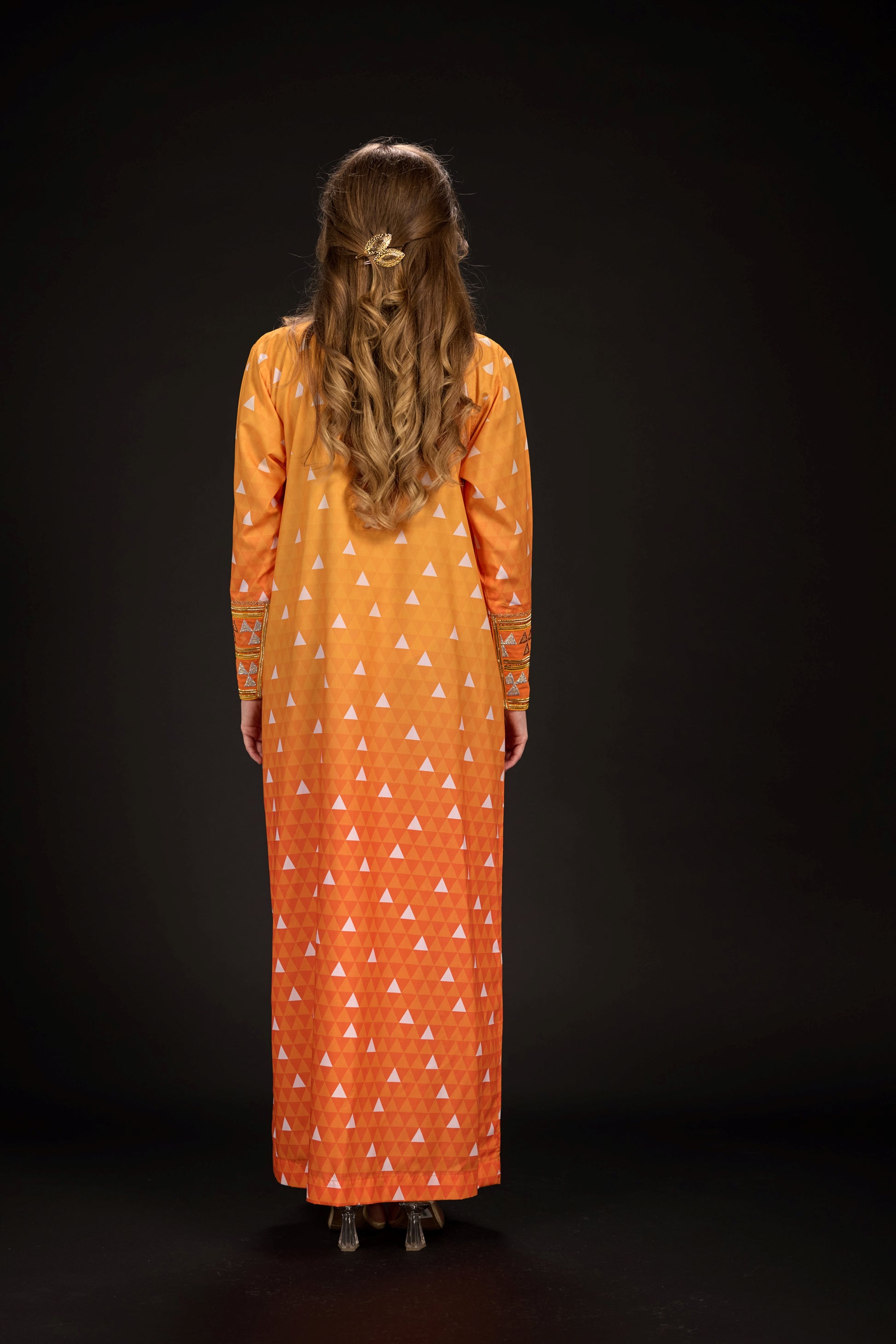 Embody the spirit of Zenitsu Agatsuma with this luxurious Arabic-style Mukhawara, inspired by his vibrant and bold attire. The yellow to orange gradient fabric captures the intensity and brilliance of Zenitsu's lightning-fast abilities, while the triangular patterns reflect his inner humor, strength, and growth. This piece channels both the electric energy and the gentle elegance that defines Zenitsu, making it a perfect fusion of power and beauty.